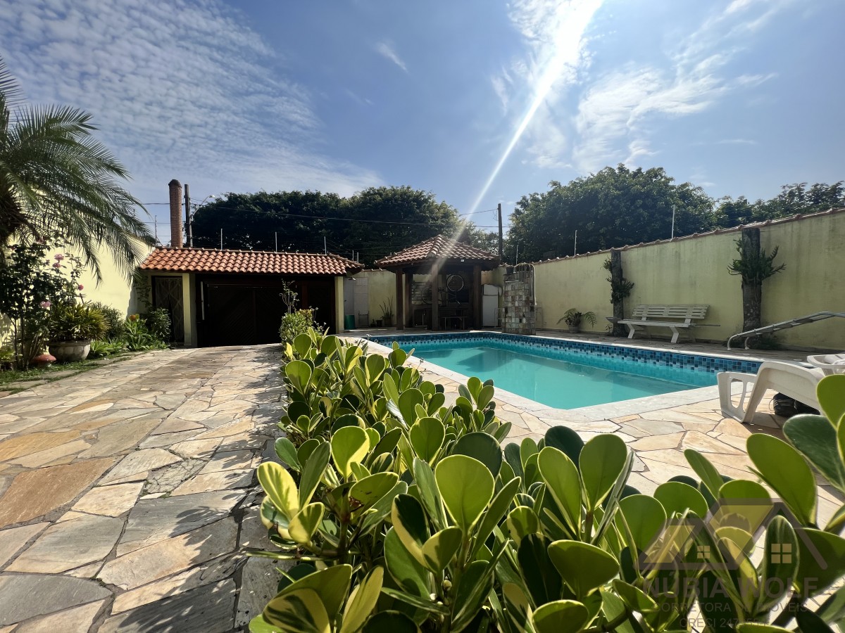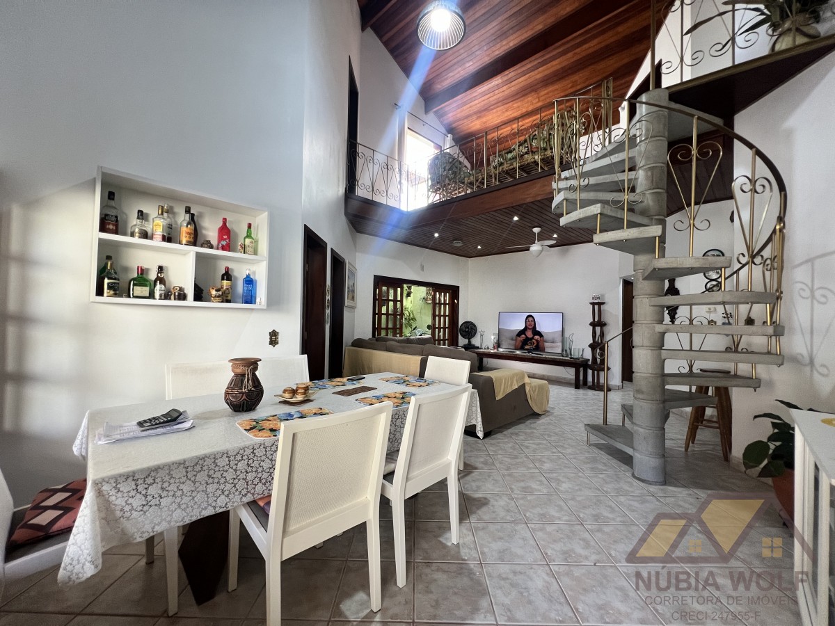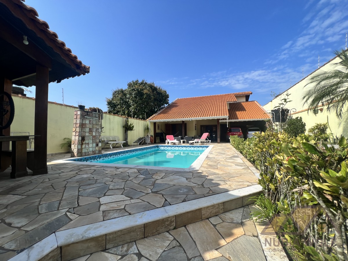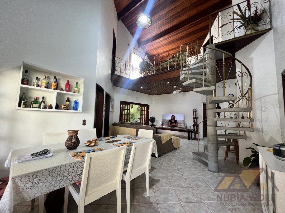 Conheça esse lindo sobrado à venda em bairro nobre de Peruíbe/SP, pé direito alto, com 5 dormitórios, sendo 5 suítes, sala 2 ambientes, mezanino, cozinha integrada com a sala e quintal, piscina, área gourmet, garagem vaga para 6 automóveis e quintal .