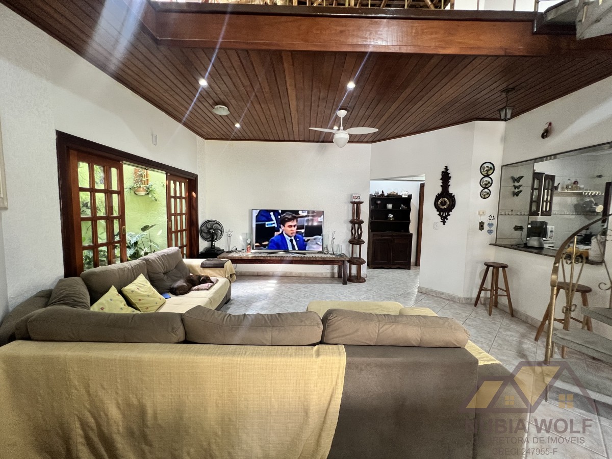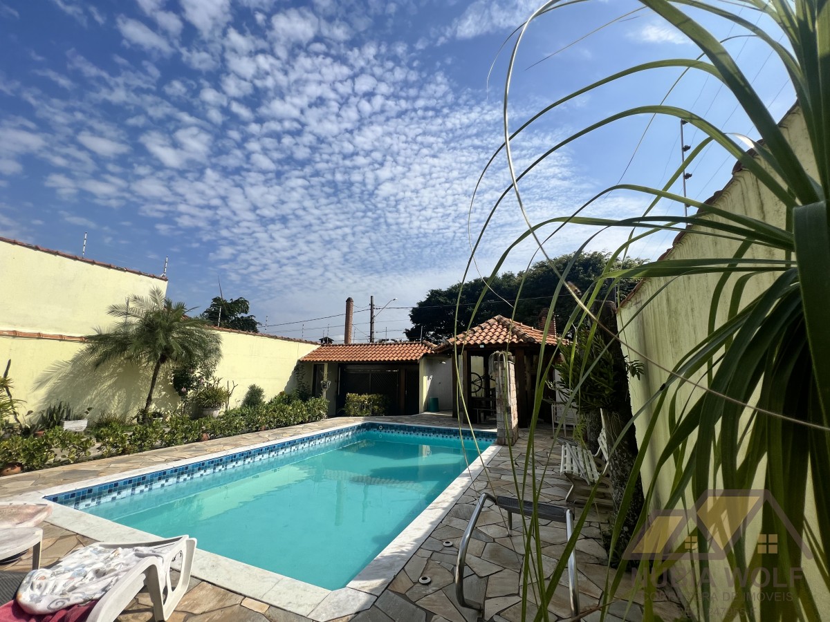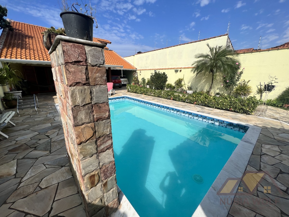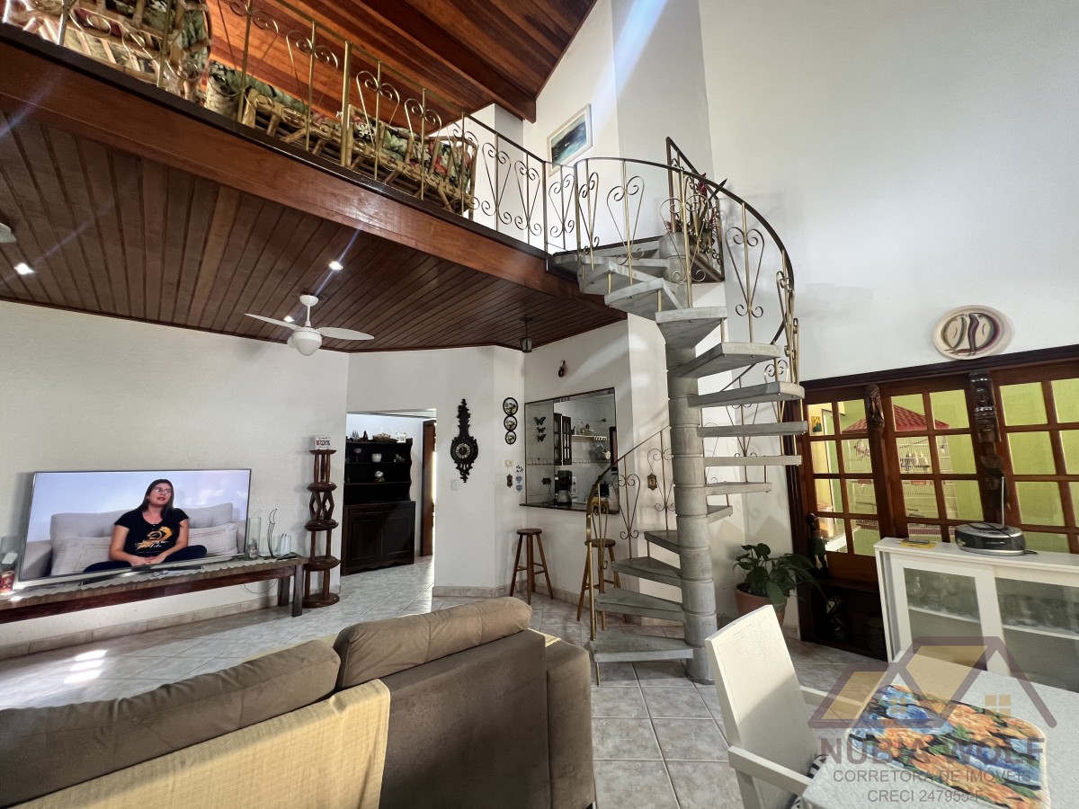 Conheça esse lindo sobrado à venda em bairro nobre de Peruíbe/SP, pé direito alto, com 5 dormitórios, sendo 5 suítes, sala 2 ambientes, mezanino, cozinha integrada com a sala e quintal, piscina, área gourmet, garagem vaga para 6 automóveis e quintal .