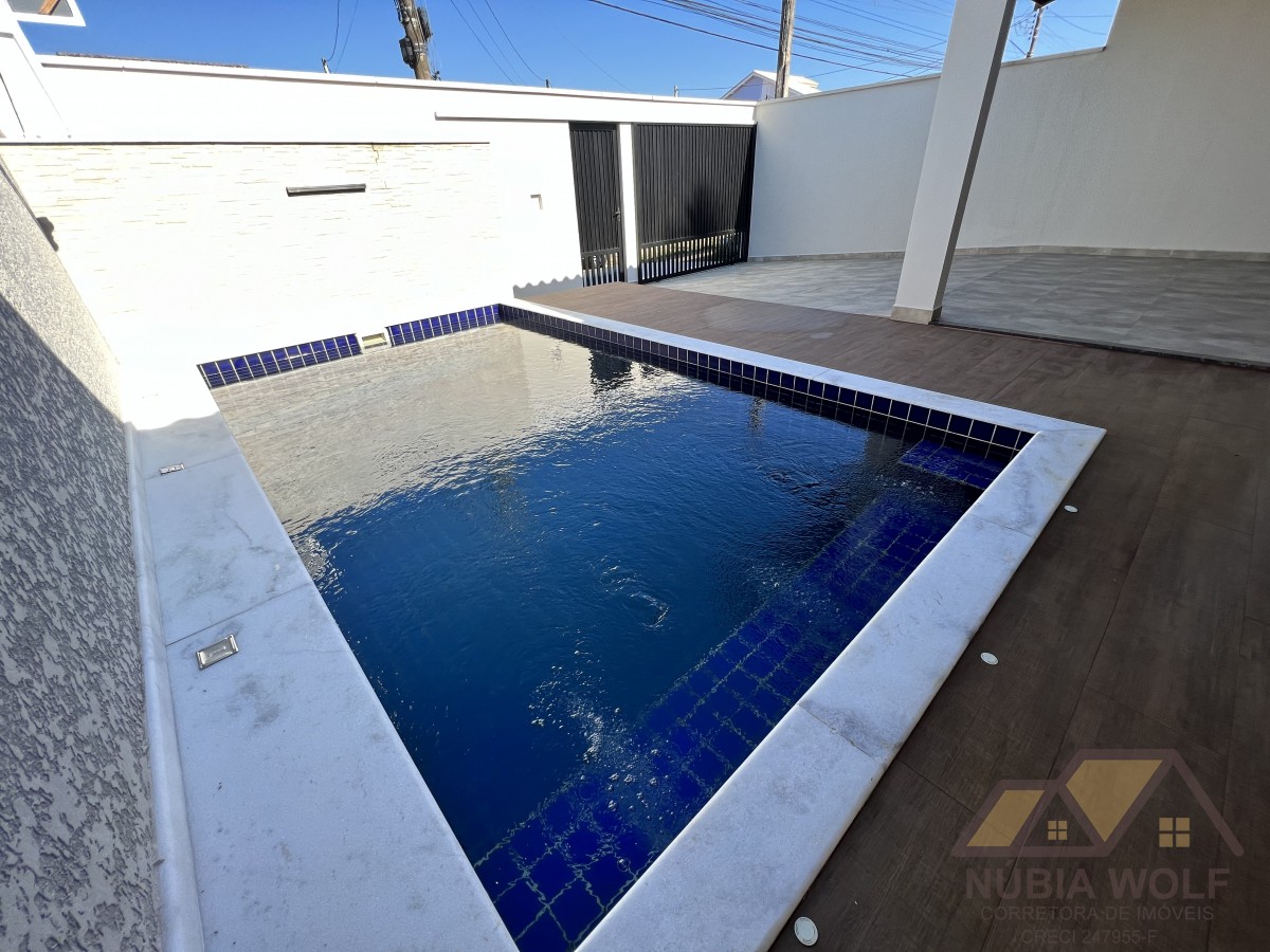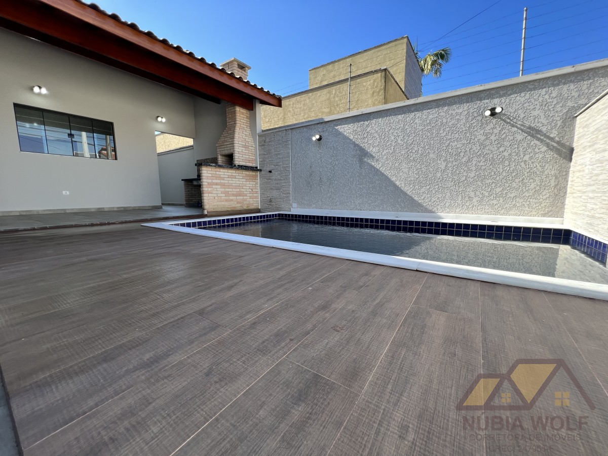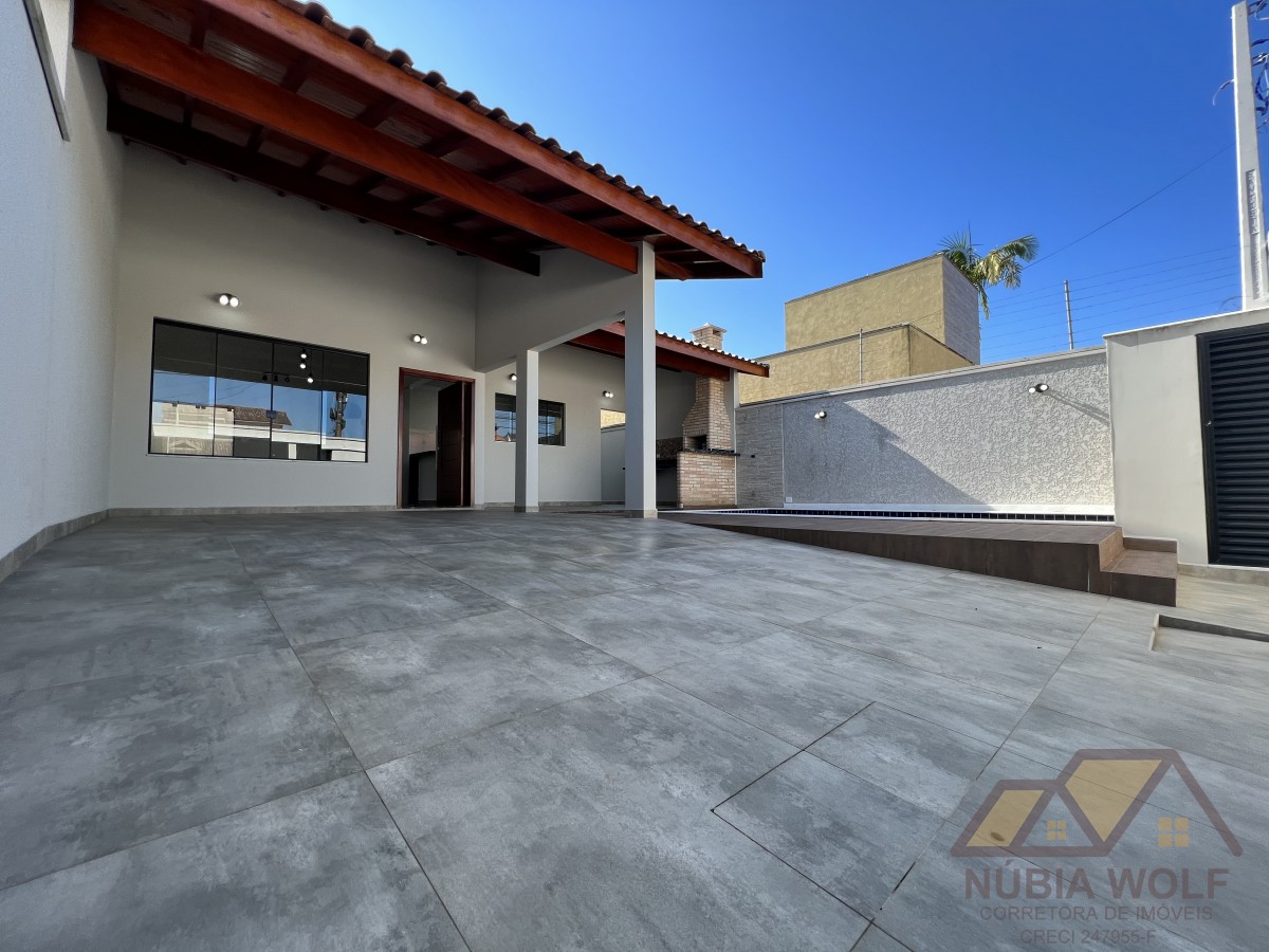 3 dormitórios, sendo ( 1 suíte), Sala espaçosa para 02 ambientes integrada com área de lazer , moderna, balcão em pedras. Piscina , bancada em pedras granito , garagem para 04 carros. Aceita financiamento bancário.