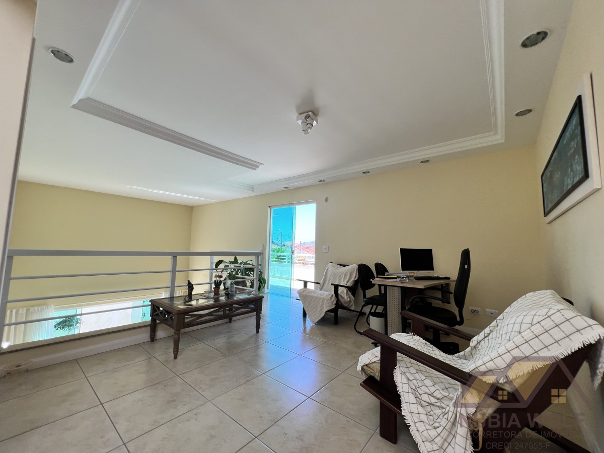 Sobrado à venda 2 lotes, sala 3 ambientes, 2 dormitórios embaixo, sendo 1 suíte, na parte superior são 3 suítes, uma delas tem closet, hall(escritório), sacada, lavabo, garagem para 2 carros cobertos, 2 descobertos, edícula com área de serviço, banheiro externo, cozinha, planejada, banheiro social, dormitório.