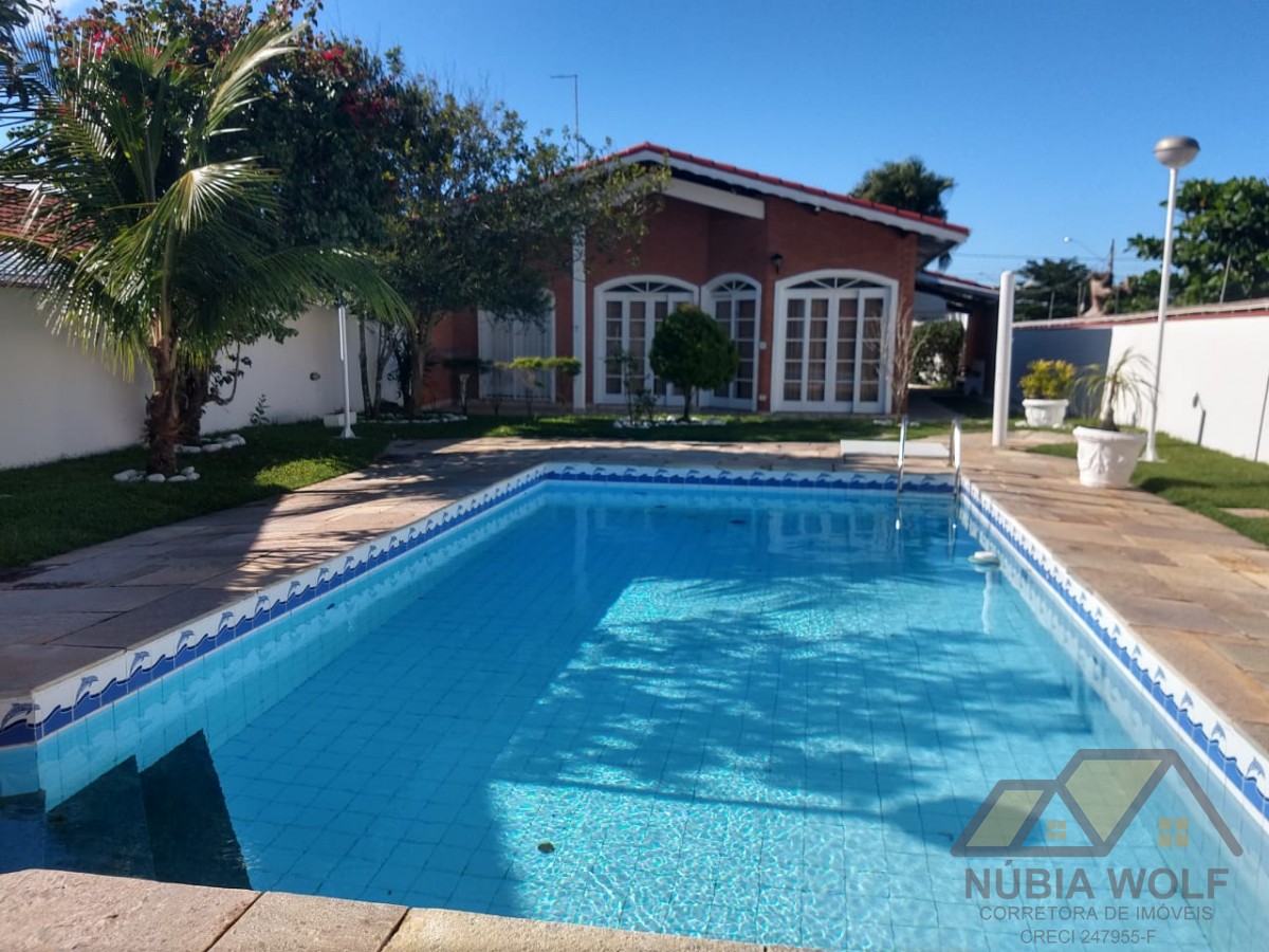 Vende-se essa linda casa, 2 lotes, aproximadamente 550 metros da praia, sendo 3 suítes, 2 dormitórios, banheiro social, sala 3 ambientes, cozinha, quintal, piscina, garagem para 6 carros.