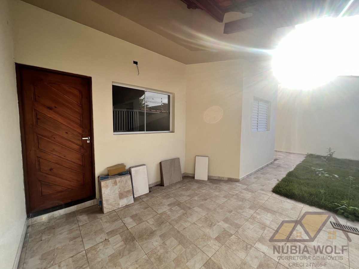 Casa nova à venda com 2 dormitórios, sendo 1 suíte, cozinha, sala, quintal, lavanderia, garagem para 2 automóveis. Aceita financiamento bancário