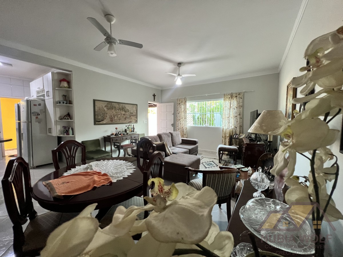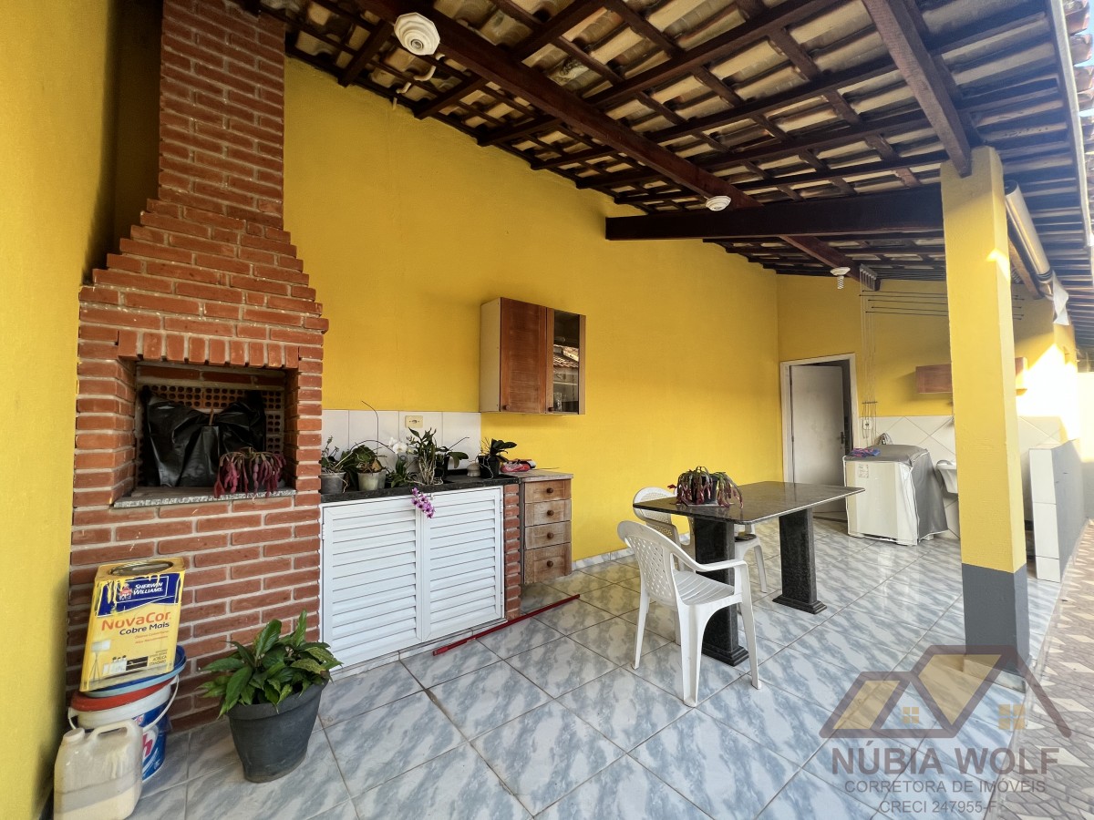 Casa térrea a venda em Peruíbe com 3 dormitórios, sendo 1 suíte, sala para dois ambientes, cozinha americana, wc social, área de serviço, edícula com quarto, wc e área de churrasqueira, espaço pra piscina e garagem para 04 autos. Agende uma visita.
