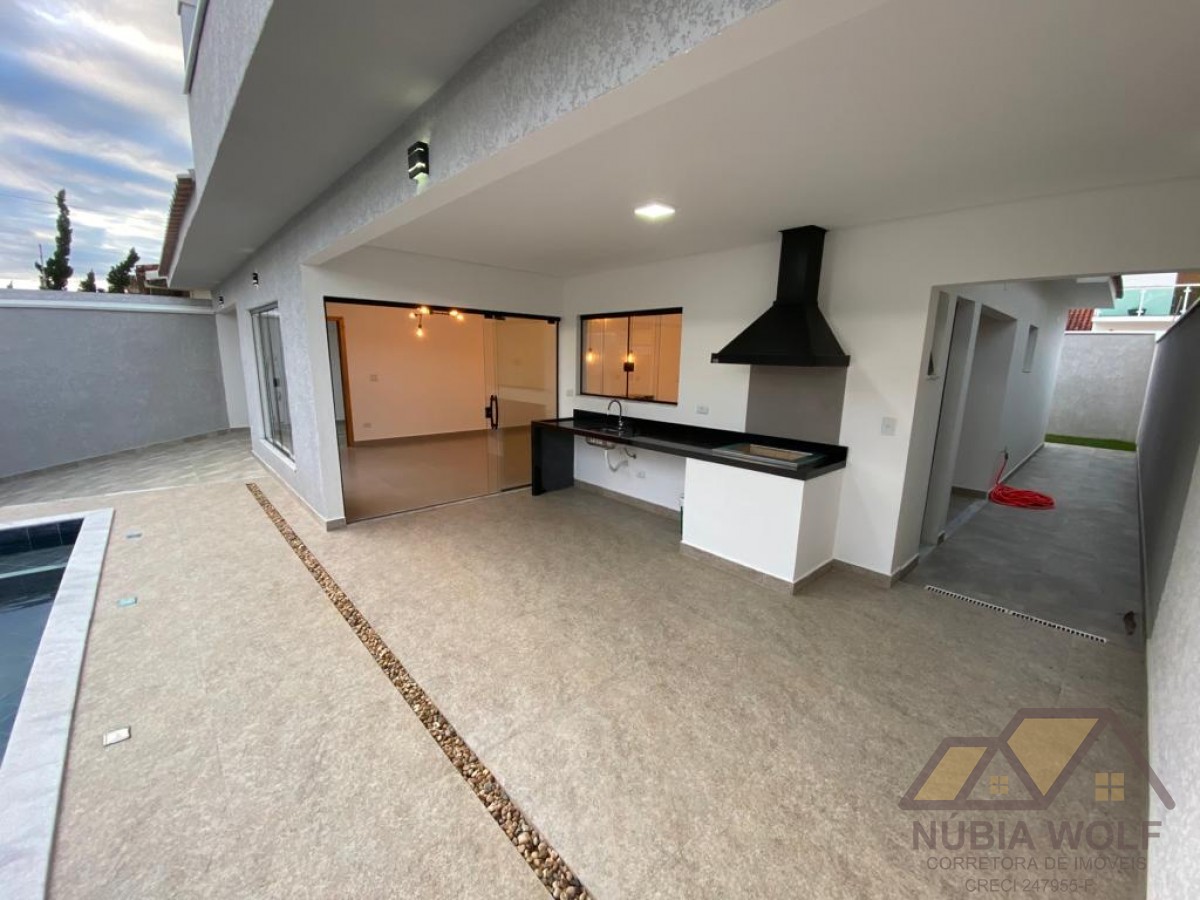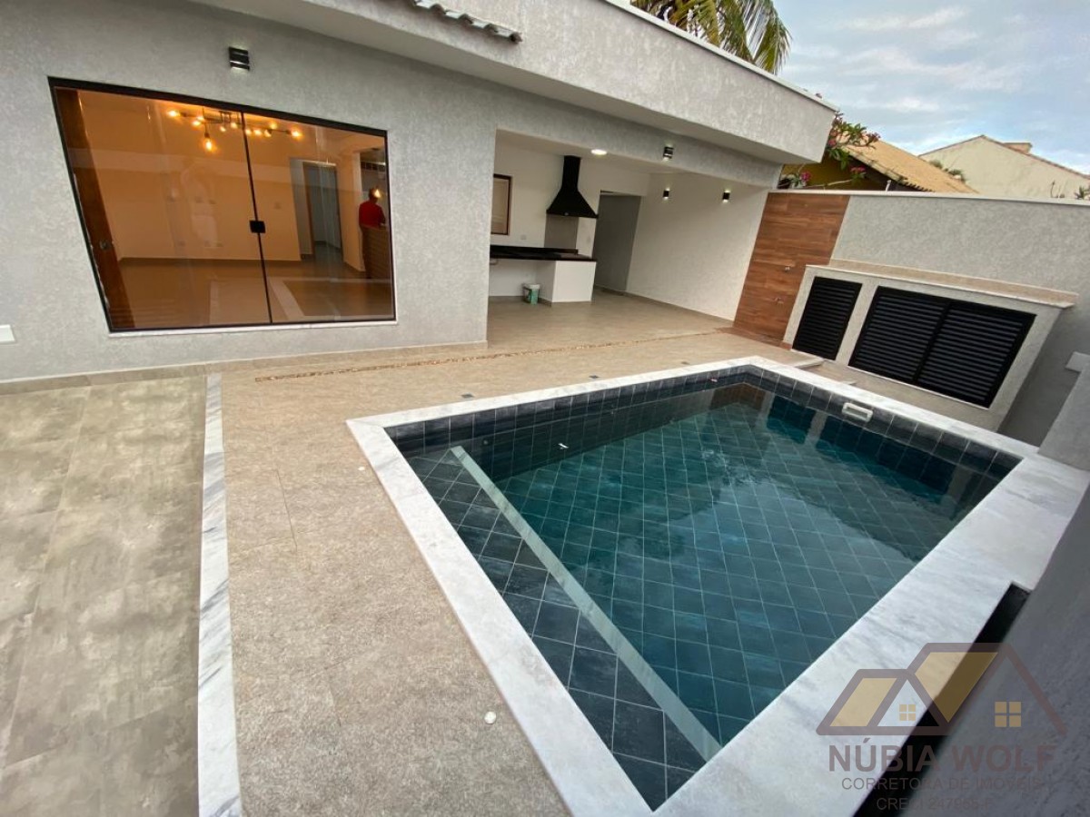 Casa nova à venda aproximadamente 100 metros da praia, 3 dormitórios, sendo 1 suíte, piscina com hidromassagem, varanda gourmet, churrasqueira, ambientes integrados, infra para ar condicionado nos quartos, garagem para 3 automóveis.