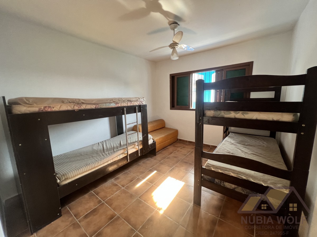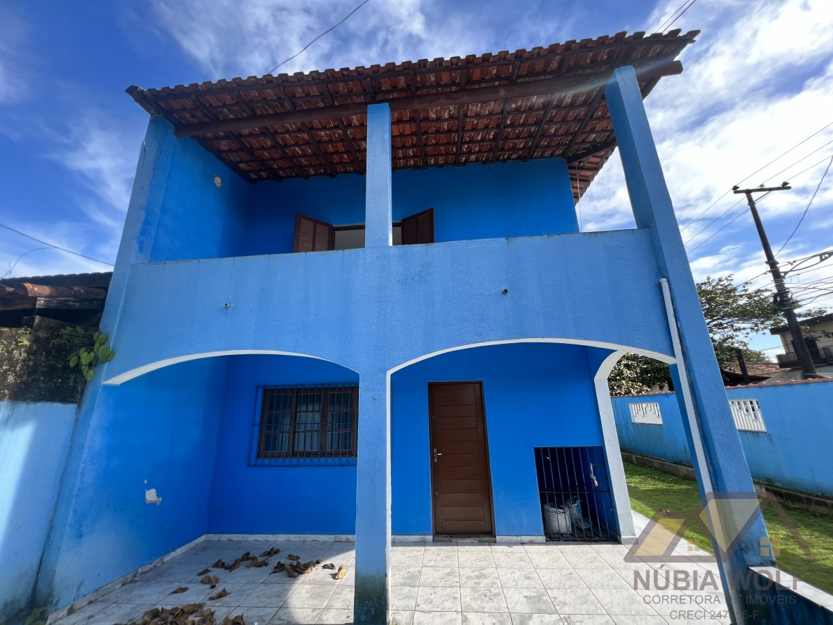 Sobrado à venda de esquina, aproximadamente 500 metros da praia, com 5 dormitórios, sendo 3 suítes, 2 banheiros sociais, sala, cozinha planejada, quintal, espaço piscina, garagem para 4 automóveis, área gourmet e churrasqueira.